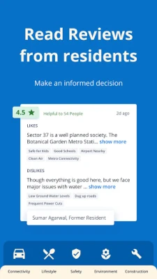 ✓To bring genuine information about your preferred society/locality, 99acres house search app has a Ratings & Reviews feature where existing and past residents rate and review their society/locality and give their honest opinion to help you make an informed decision.