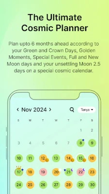 •⁠ ⁠Preview your months with a color-coded, astrological 180-day (90 Days for Monthly) calendar.