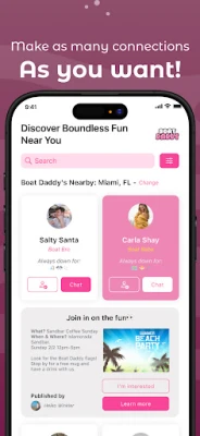 Boat Daddy is the ultimate free social app for boating enthusiasts and water lovers. Whether you’re into fishing, sandbar partying, sunset cruising, sailing, diving, or just meeting new people on the water, Boat Daddy connects you to the vibrant salt life community around you.