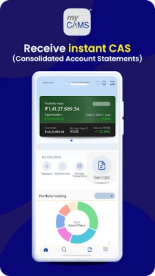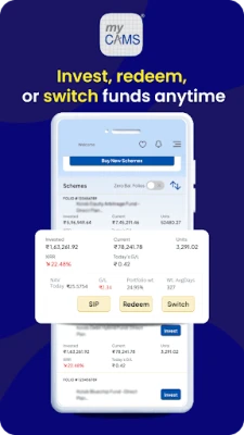 myCAMS brings a host of features - get a one view of your MF portfolio, open new folios, purchase, redeem, switch, set up SIP and more. The app facilitates faster, easier and smarter ways to transact in Mutual Funds.