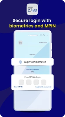 • Biometric/MPIN login – Simplified your myCAMS login process now. Just pick your preferred login methods – Biometric, MPIN or Password right away