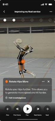The app analyzes your volleyball movements and provides actionable feedback on what you're doing well and what needs improvement. You'll receive customized training exercises designed to address your specific technical weaknesses.